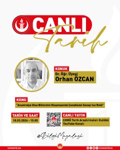 Dr. Öğr. Üyesi Orhan ÖZCAN’ın değerli anlatımıyla canlı yayın serimizin yeni bölümü 18 Mart 2026 tarihinde, saat 15.00’te ÇOMÜ Tarih Araştırmaları Kulübü Youtube kanalında sizlerle olacak.