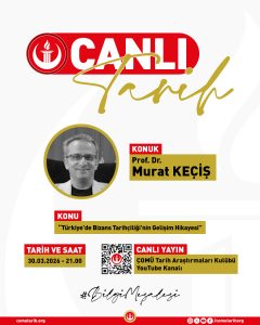 Prof. Dr. Murat KEÇİŞ’in değerli anlatımıyla canlı yayın serimizin yeni bölümü 30 Mart 2026 tarihinde, saat 21.00’de ÇOMÜ Tarih Araştırmaları Kulübü Youtube kanalında sizlerle olacak.