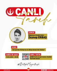 Bağımsız Araştırmacı Zeynep ERBAŞ’ın (@zeynp.erbas18) değerli anlatımıyla canlı yayın serimizin yeni bölümü 10 Nisan 2026 tarihinde, saat 20.00’de ÇOMÜ Tarih Araştırmaları Kulübü Youtube kanalında sizlerle olacak.