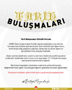22 Kasım 2025 tarihinde, saat 13.00’te gerçekleştirmeyi planladığımız “Venedik’ten Doğu’ya Bir Anlatı: Marco Polo’nun “Harikalar Kitabı” başlıklı Tarih Buluşmamızda*, katılımcıların kendi sorumlu oldukları bölümleri birbirlerine aktardığı ve Seyahatname’yi bir bütün olarak analiz ettiği interaktif bir buluşma gerçekleştireceğiz. Bu etkinlikte hedeflenen temel kazanımlar şunlardır: