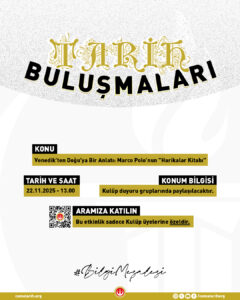 Bu buluşma, Marco Polo’nun ‘harikalarla’ dolu dünyasına girerek, Doğu’nun Batı anlatısındaki yerini keşfetmek ve tarihsel okuryazarlık becerilerini derinleştirmek için önemli bir fırsat sunmaktadır.